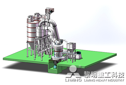 破碎后合格的物料,經(jīng)變頻皮帶給料機均勻定量連續(xù)地送入主機磨室內(nèi)進行研磨。粉磨后的物料被風(fēng)機氣流送入選粉機進行分級,在分析機的作用下,不符合細(xì)度要求的物料落入磨室內(nèi)重新碾磨,合格的物料則隨氣流經(jīng)管道進入旋風(fēng)集粉器內(nèi),進行分離收集,經(jīng)排料裝置排出即為成品粉體。分離后的氣流通過旋風(fēng)集粉器上端回風(fēng)管進入風(fēng)機。該系統(tǒng)在正負(fù)壓狀態(tài)下運行,設(shè)備配有脈沖除塵器,環(huán)保。